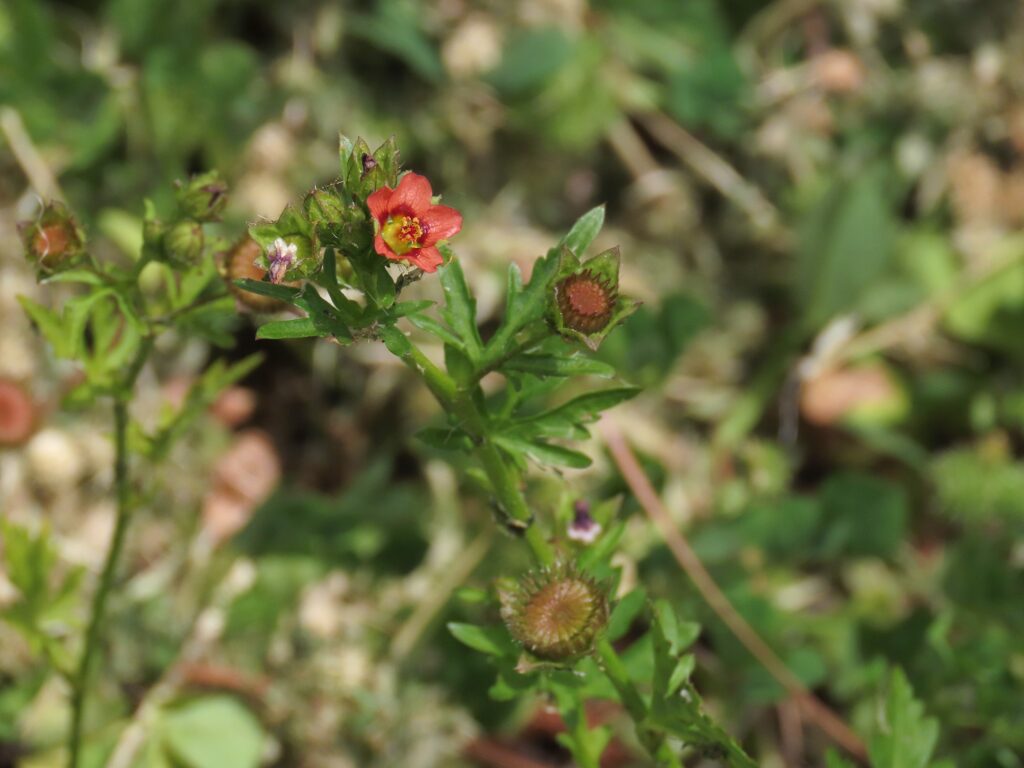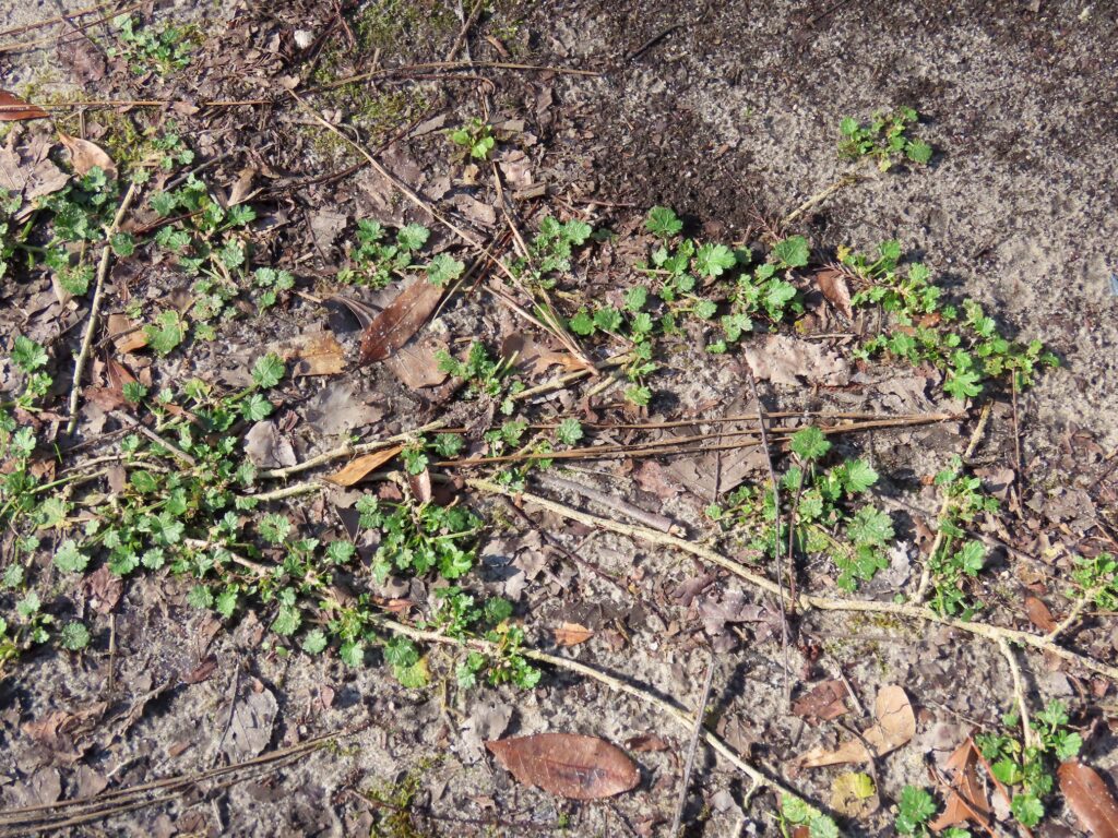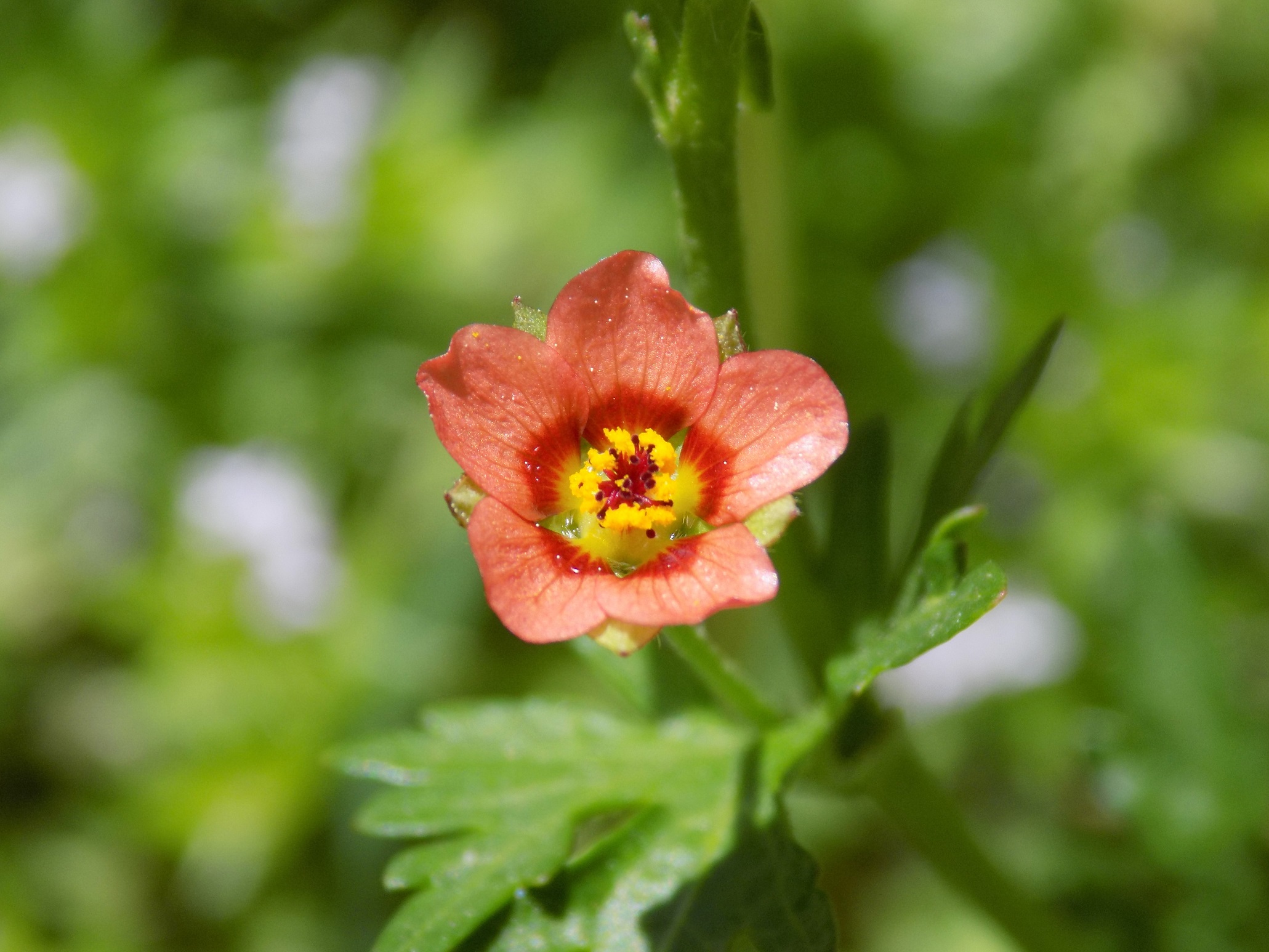 Carolina Bristle Mallow is a perennial wildflower that flattens itself across the ground with a prostrate growth form. As the common name implies, it is indeed a Mallow and it has many of the typical characters one expects from that lineage. It has emerald-green, inch-wide leaves with coarsely serrate margins and usually three to five lobes in an overall palmate-shape that is quintessential to Mallows. Its stems and leaves are covered in hairs. Its foliage can serve as the host plant for a handful of native butterflies, chiefly the 3 species of Checkered-Skipper (Burnsius spp.) found in the Carolinas. Carolina Bristle Mallow blooms throughout April with a small, 5-petalled, bowl-shaped flower coral-pink in color with a yellow center ringed in crimson. Its flowers mature into a flattened fruit of a dry capsule containing about 1-2 dozen seeds.