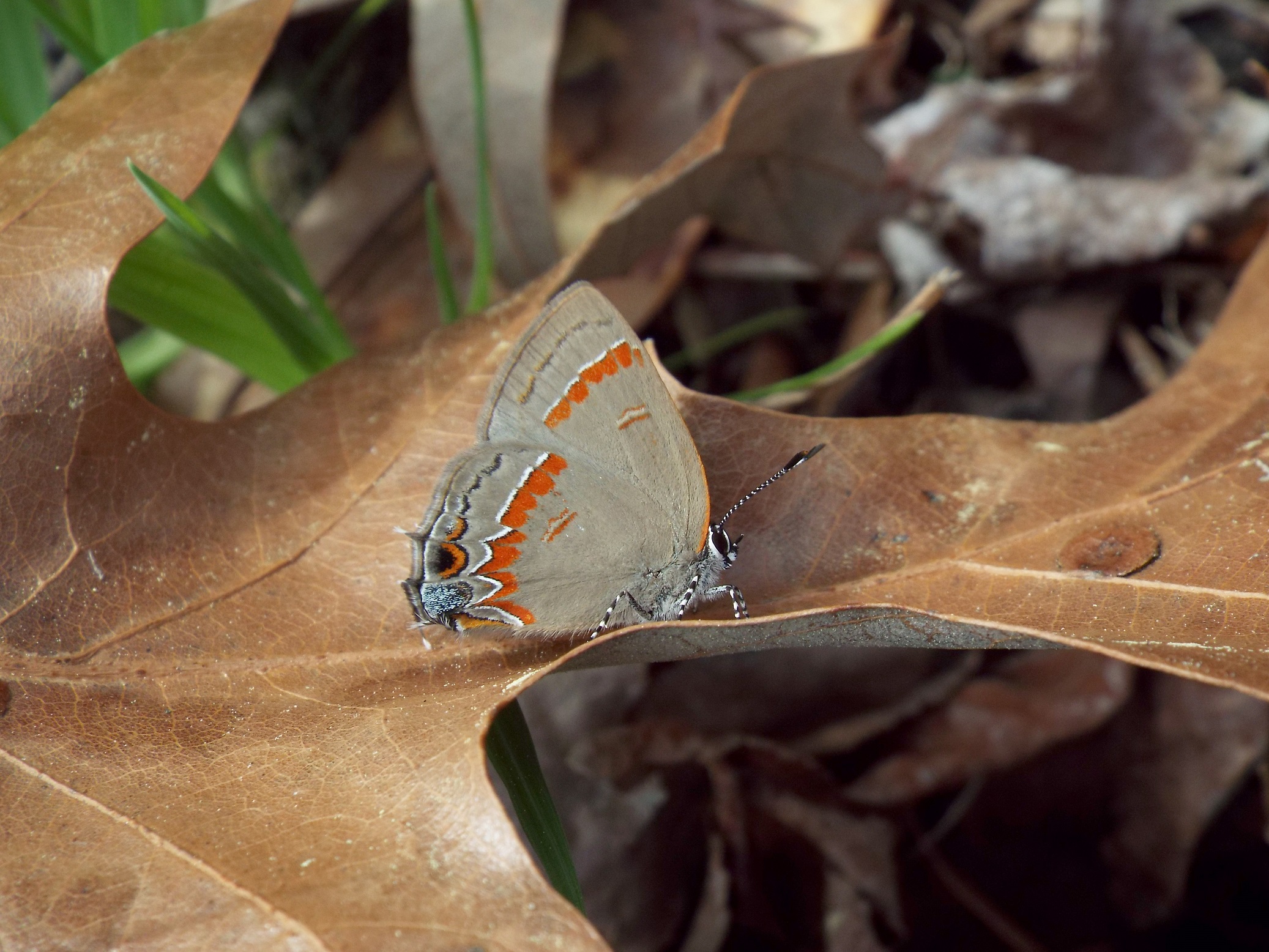 This week for Flora and Fauna Friday we’ve got a dirt common, detritivorous, diminutive butterfly, the Red-banded Hairstreak (Calycopis cecrops).