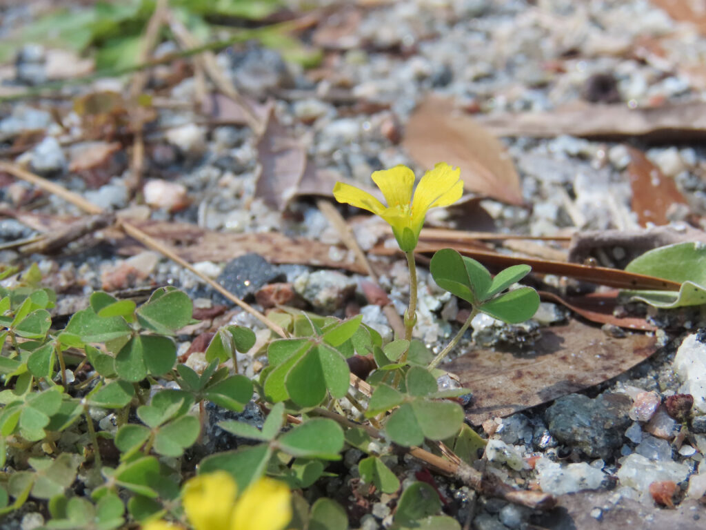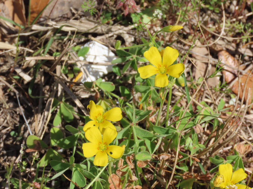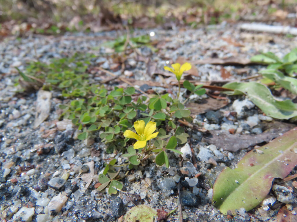 Slender Yellow Wood-Sorrel is by far our most common Wood-Sorrel in South Carolina and also a native species. It grows as an annual most often, but can survive as a perennial with some irregularity. It has a single stem and a bushy, upright growth form. Its leaves are small and emerald-green and its flowers a pure lemon-yellow. Its stems, upon close examination, have sparse, fine hairs that lay flat upward against the stem, an important feature to note. It is found commonly in lawns, garden beds, forest clearings, roadsides, and other disturbed areas.